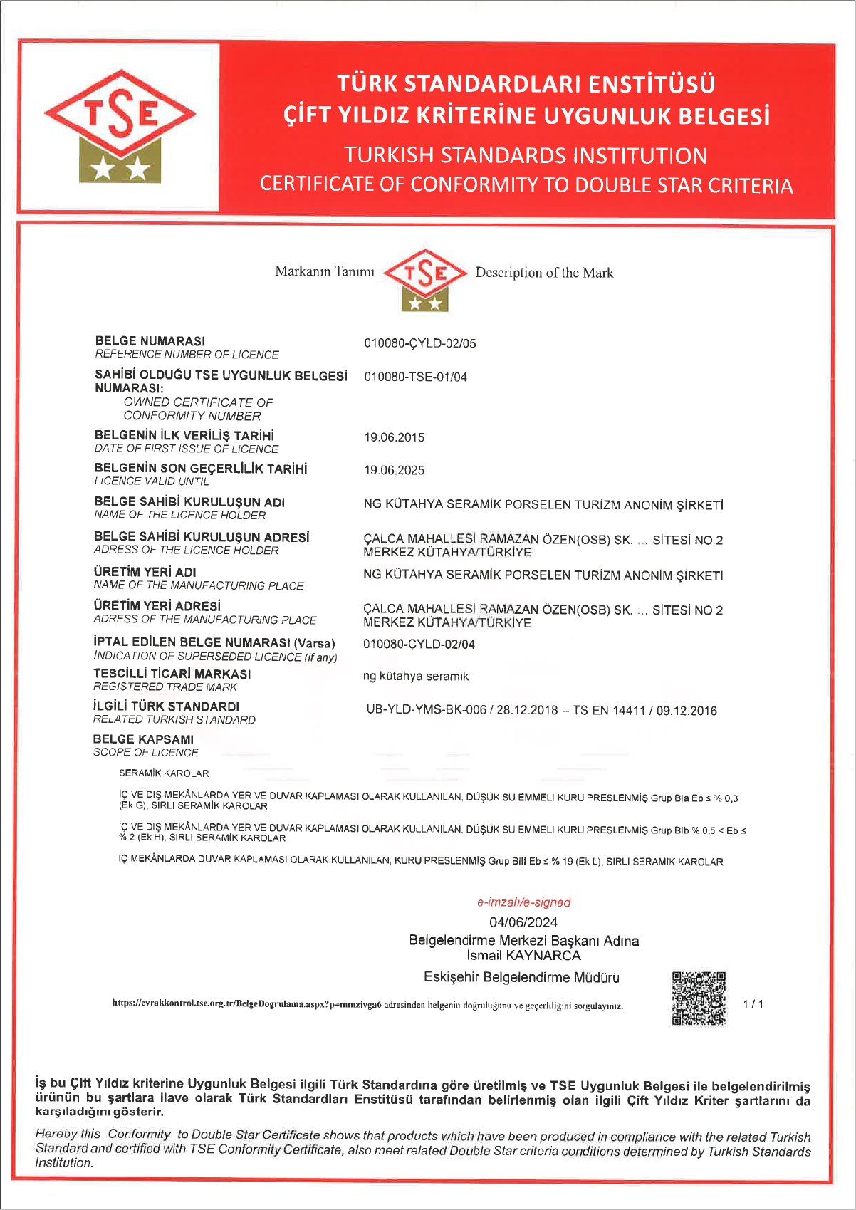 NG Kütahya Seramik Türk Standartlarına Uygunluk Belgesi-1